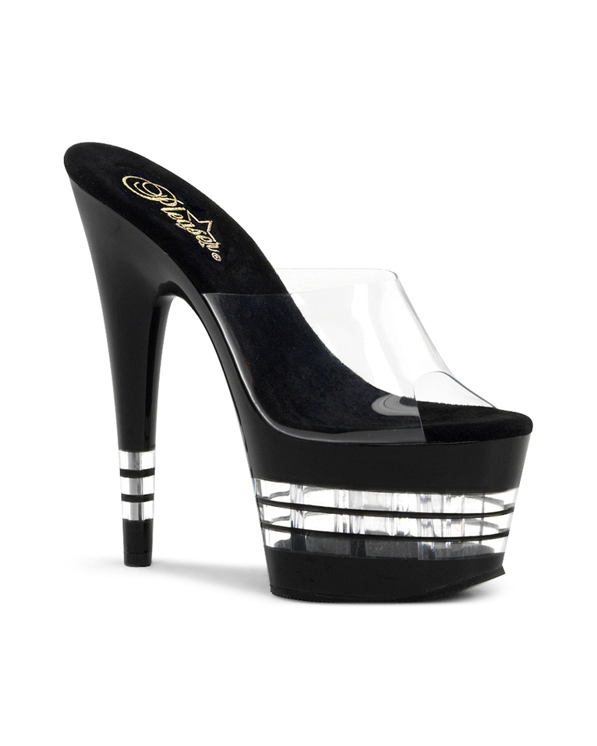 Platforma ozdobiona transparentnymi, poziomymi pasami.
