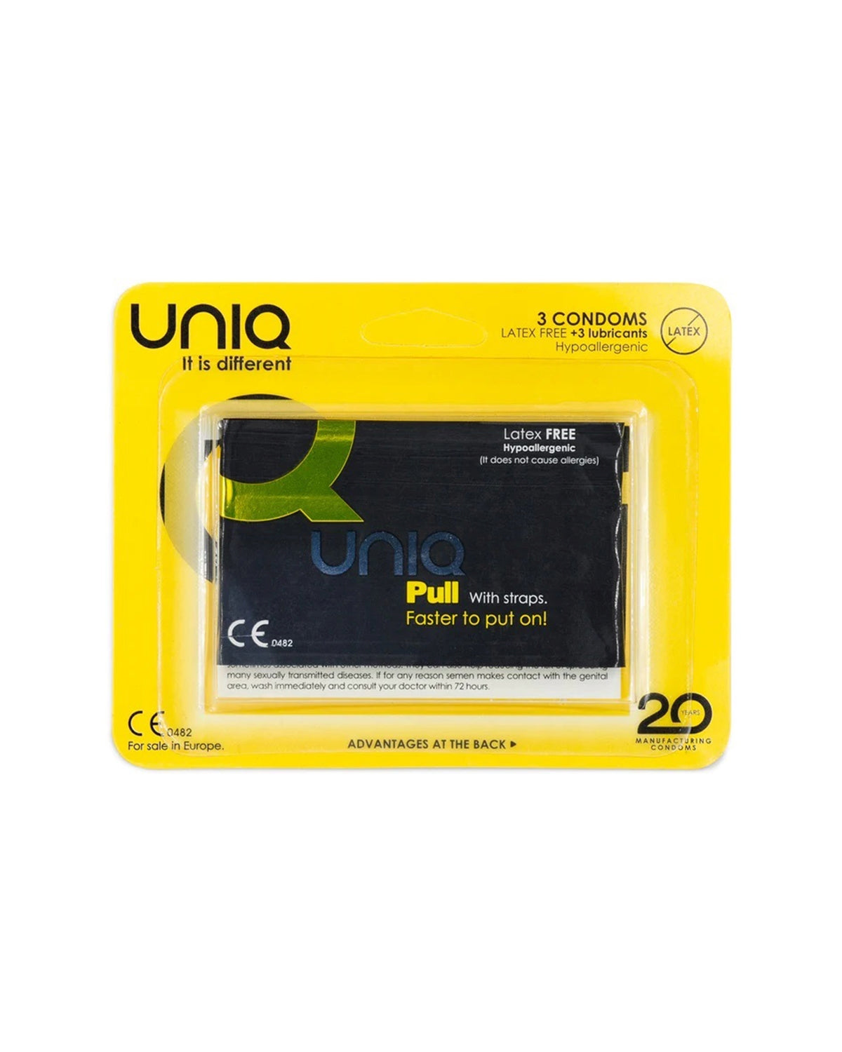 Hipoalergiczne, wyjątkowo miękkie i bardzo mocne prezerwatywy bez lateksu przylegają do skóry użytkownika i nie zsuwają się podczas seksu. Ciesz się intensywnym, rewelacyjnym i bezpiecznym seksem nawet w ciemności, bo z Uniq Pull założenie prezerwatywy zajmie tylko kilka sekund.
