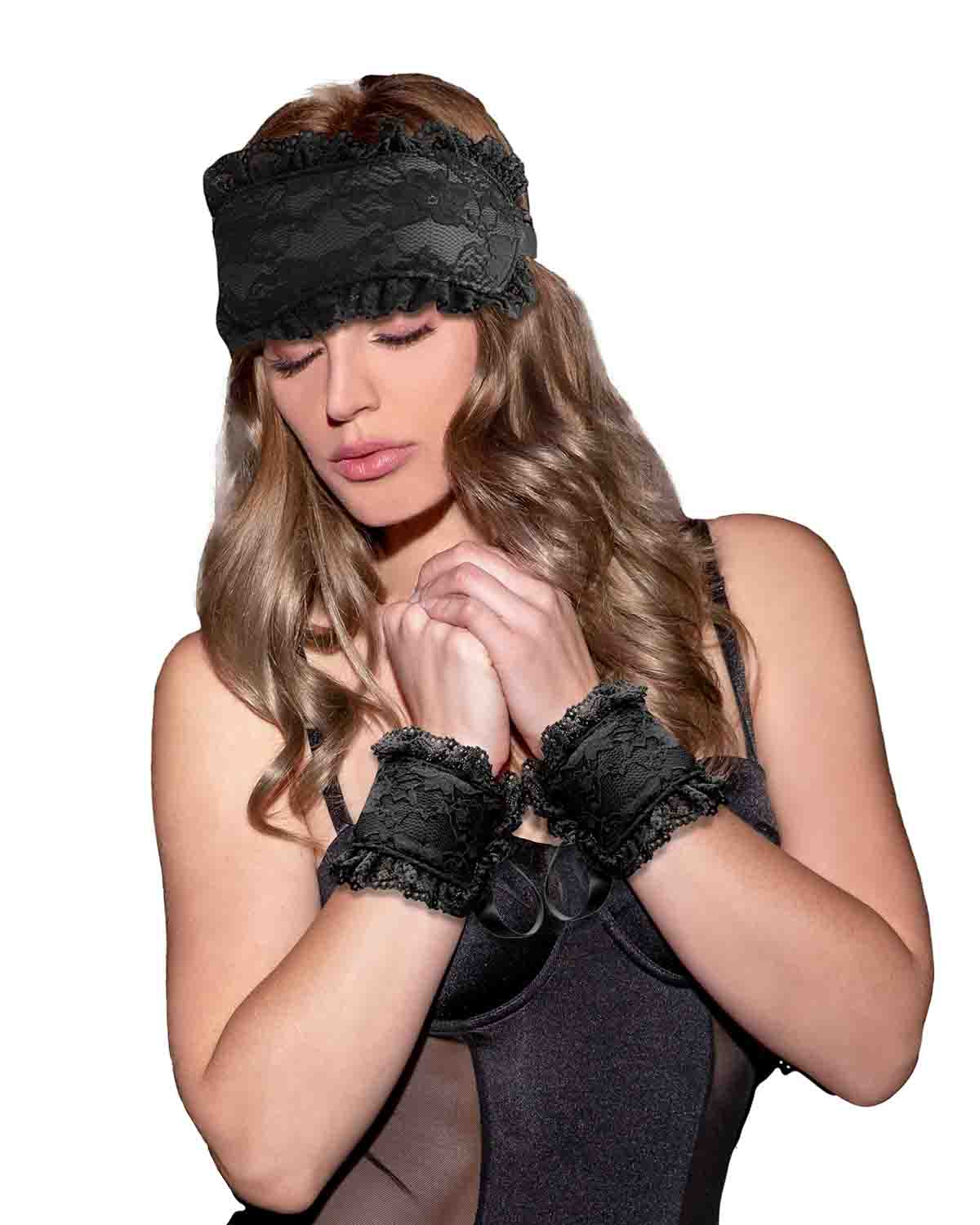 Komplet zawiera maseczkę na oczy oraz kajdanki na ręce.