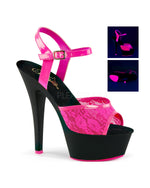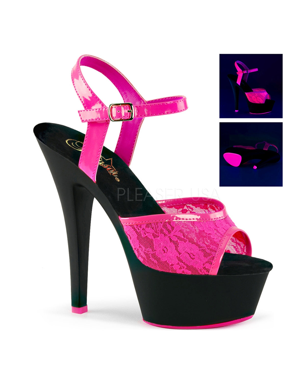 Neonowa, różowa cholewka świeci w ultrafiolecie.