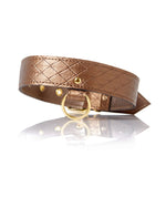 Wykonana z wytrzymałej eko skóry z ozdobnymi tłoczeniami. Z tyłu 5-stopniowa regulacja obwodu klamrą.