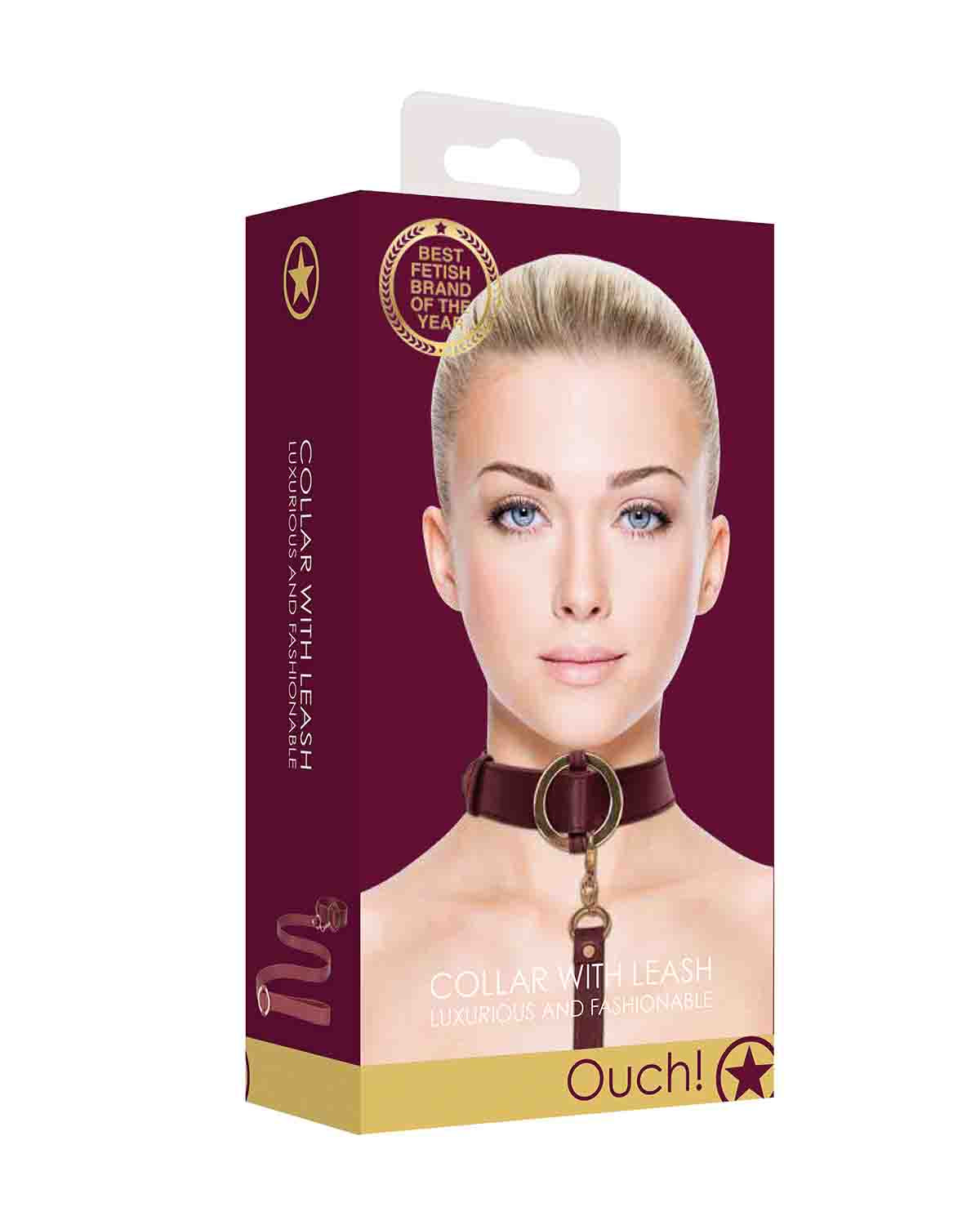 Ouch! Halo Collar with Leash obroża erotyczna ze smyczą bordowa