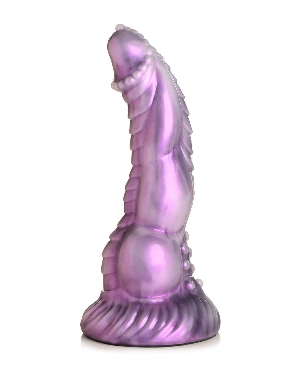 Poznaj Celestial Cock - niezwykłe dildo inspirowane mitycznym, niebiańskim smokiem. Jego perłowo-różowa powierzchnia, lśniąca niczym magiczny artefakt, przyciąga wzrok, a tekstura koralików i łuskowatego trzonu dostarcza unikalnych doznań podczas każdego ruchu.