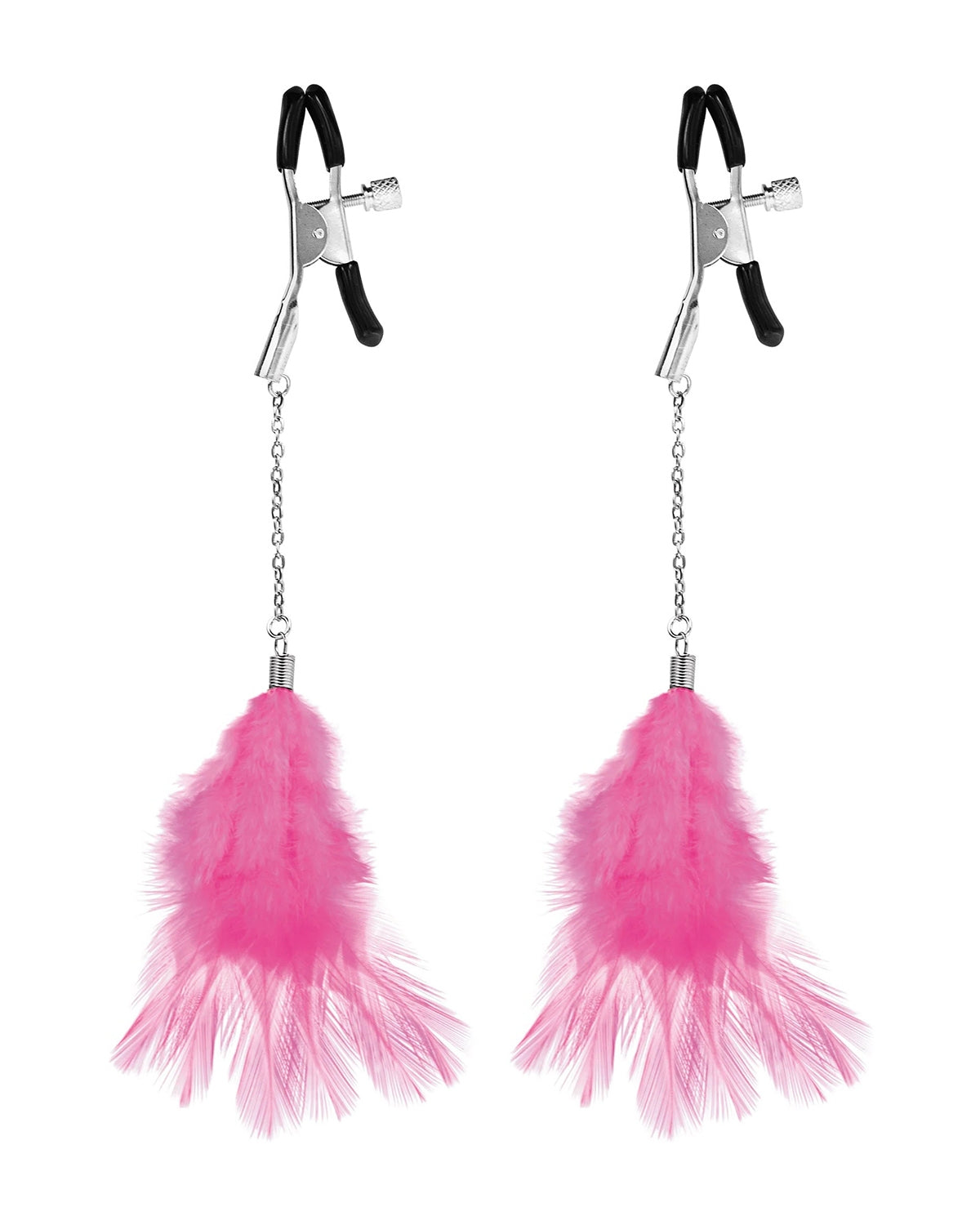 Elementy metalowe w kolorze srebrnym, pióropusze różowe.