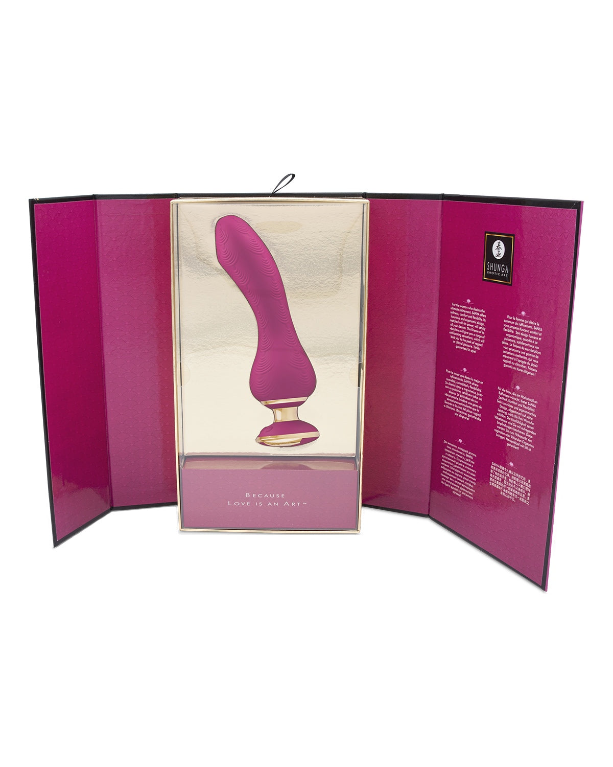 Niezwykle elegancki produkt pochodzący z nowej serii gadżetów wibrujących kanadyjskiej marki SHUNGA. Firma istnieje na rynku od 35 lat i specjalizuje się w produkcji wysokiej jakości kosmetyków intymnych, w tym olejków do masażu oraz lubrykantów.