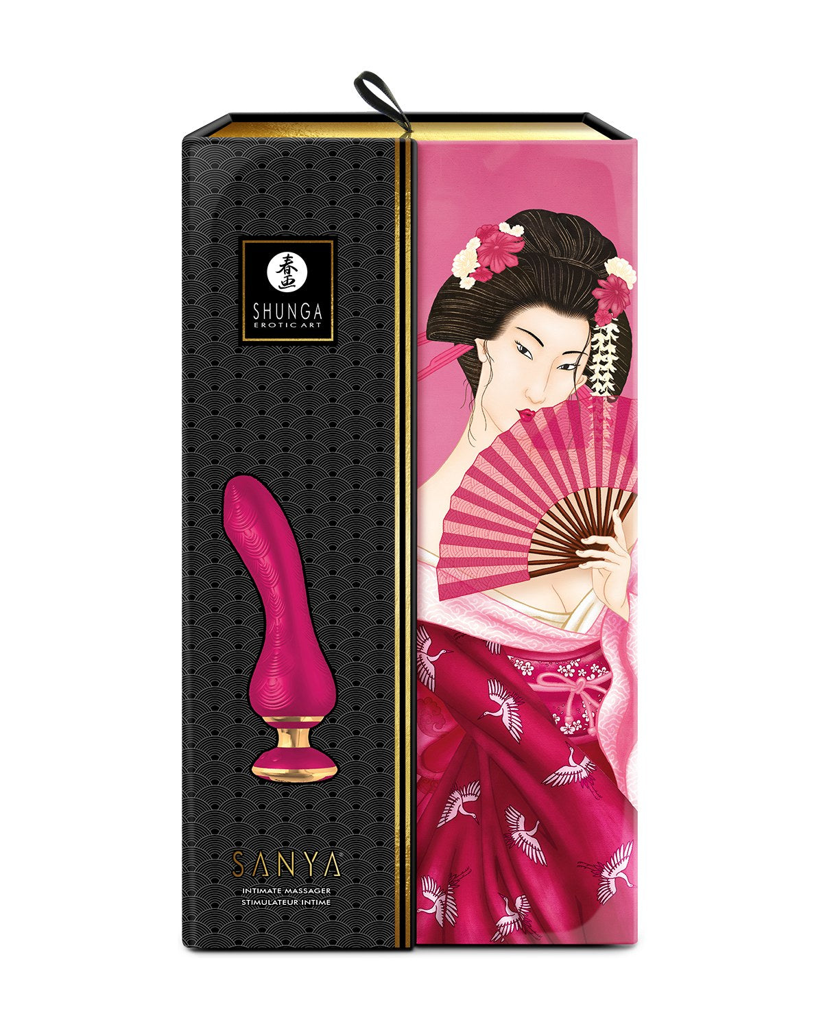 SANYA to elegancki wibrator przeznaczony do masażu wnętrza pochwy. Dzięki idealnemu wygięciu odnajdzie on oraz wymasuje Punkt G. Służy do tego mała wypustka w górnej jego części.
