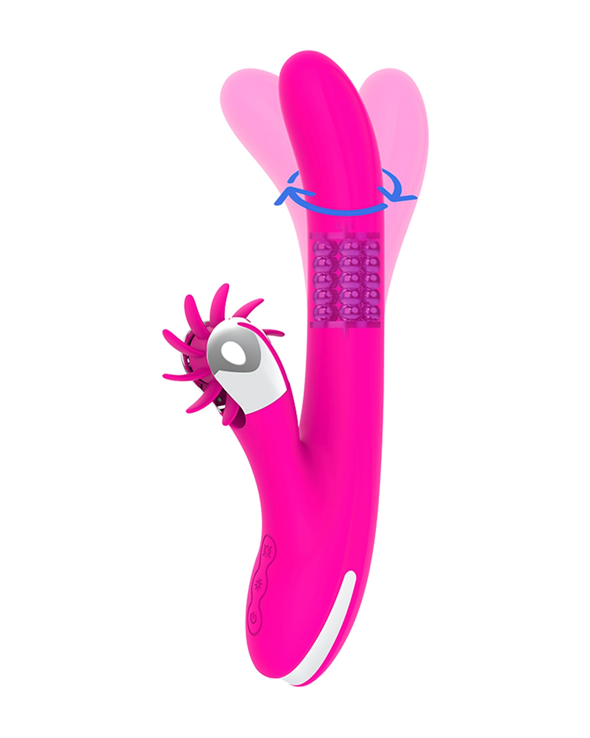 Dwufunkcyjny wibrator, który jednocześnie masuje wszystkie wrażliwe, kobiece strefy. Pobudzi łechtaczkę, punkt G oraz wnętrze pochwy w tym samym czasie.